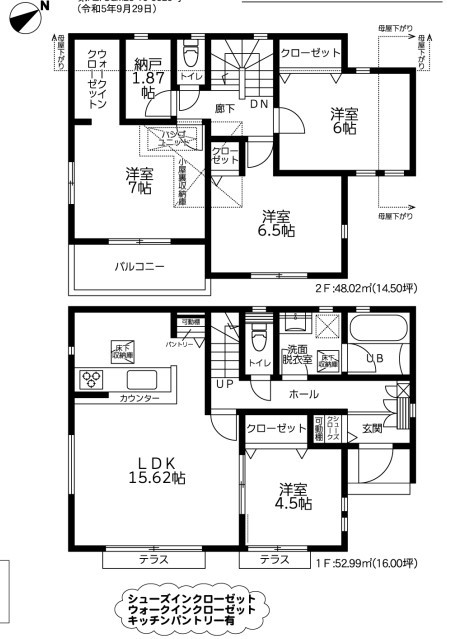 LDK15帖以上制震構造全室2面採光床下収納全居室収納小屋裏収納テラス複層ガラス食器洗浄機浄水器システムキッチンカウンターキッチン3口以上コンロパントリー(食器・食品の収納庫)トイレ2ヶ所温水洗浄便座シャワー付洗面台浴室乾燥機TV付浴室浴室に窓全居室フローリングウォークインクローゼットシューズインクローゼットTVモニタ付インターホンスマートキー24時間換気システム保育園・幼稚園800m以内コンビニ400m以内