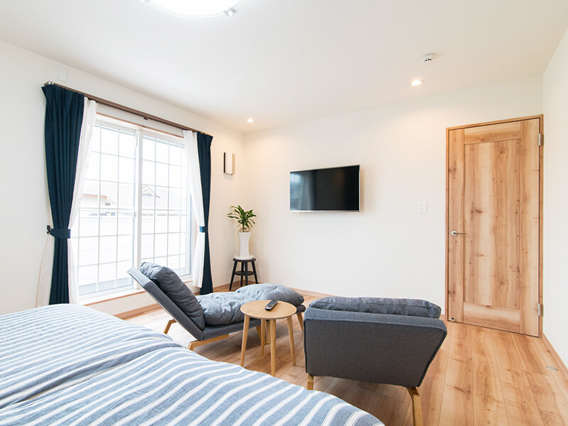 明るい自然光がたっぷり入り、どんなインテリアも映えるナチュラルな空間です。全洋室クローゼット完備。子ども部屋や将来は書斎としても活用できます。[施工例:洋室]