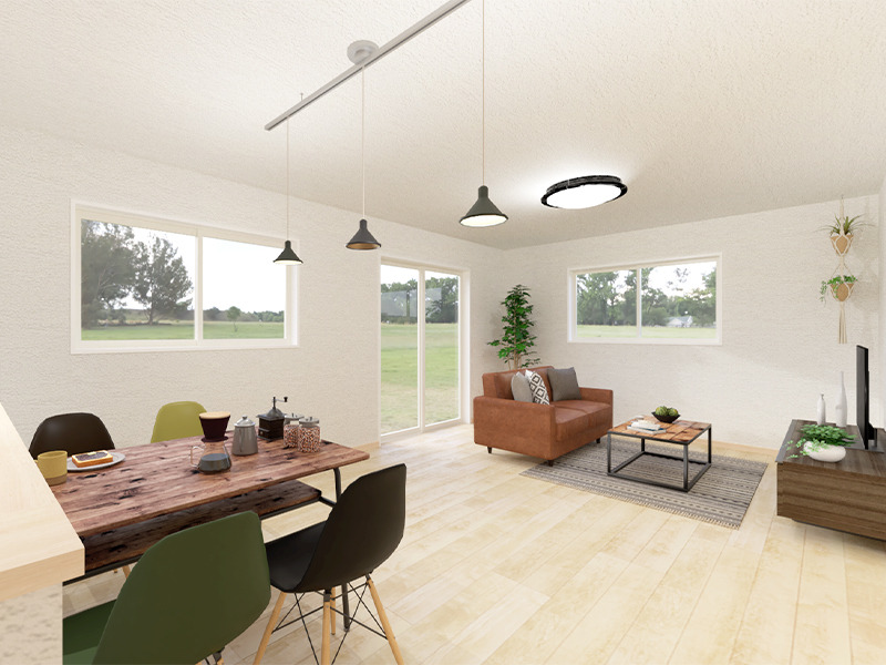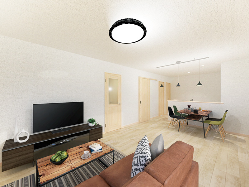 [LDK予想パース] ナチュラルな木目でリラックスできる空間。