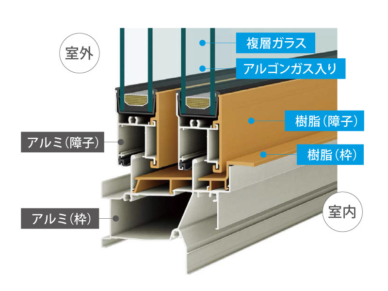 アルミサッシと樹脂サッシの長所を融合した断熱サッシで、結露がしにくく健やかな室内環境を保ちます。さらに、アルゴンガス入りのLow-E複層ガラスで室内の断熱効率を高め、紫外線をカットします。
