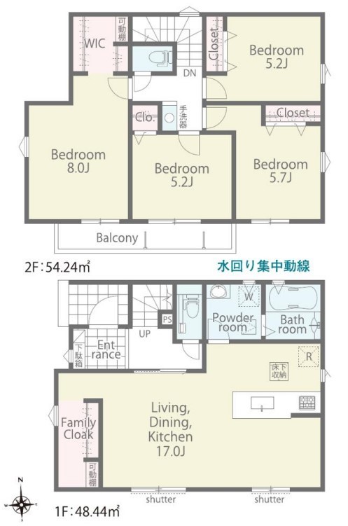 | 間取 | 4LDK + 家事動線重視,収納充実,明るいリビング (LDK17帖、洋室8帖、洋室5.7帖、洋室5.2帖、洋室5.2帖) | ||