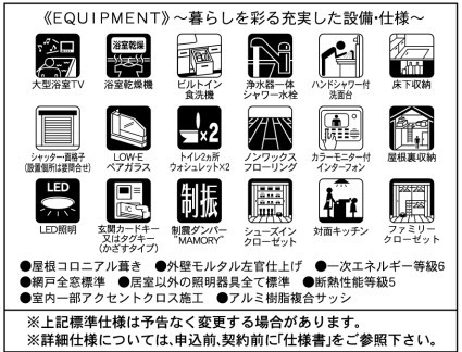 閑静な住宅地LDK15帖以上床下収納全居室収納小屋裏収納テラス複層ガラス食器洗浄機浄水器システムキッチンカウンターキッチン3口以上コンロトイレ2ヶ所温水洗浄便座シャワー付洗面台浴室乾燥機追焚機能TV付浴室浴室に窓全居室フローリングシューズインクローゼットTVモニタ付インターホン24時間換気システム小学校800m以内保育園・幼稚園800m以内公園800m以内