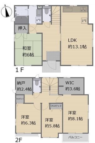 | 間取 | 4LDK (LDK13.1帖、和室6帖、洋室8.1帖、洋室6.3帖、洋室5.8帖) | ||