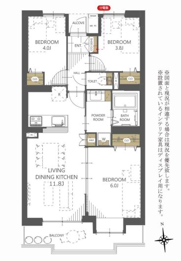 | 間取 | 3LDK (洋室6帖、洋室4帖、洋室3.8帖、LDK11.8帖) | ||