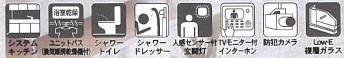 | 設備 | 公営水道、本下水、個別LPG プロパンガス,電気,上水道,下水道,システムキッチン,カウンターキッチン,浄水器,給湯,トイレ2箇所,温水洗浄便座,シャンプードレッサー,浴室乾燥機,フローリング,複層ガラス,24時間換気システム,収納スペース,床下収納,ディンプルキー,モニター付きインターホン,火災警報器等設置済 建設住宅性能評価取得(予定含む) |