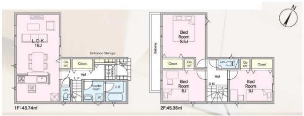 | 間取 | 3LDK + 明るいリビング,全居室6帖以上 (LDK16帖、洋室8.5帖、洋室6帖、洋室6帖) | ||